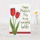 Designed with a bright white background, the card keeps the layout open and easy to take in. On the left, two large flower shapes look like early spring blooms, with deep crimson petals shaded to appear gently rounded. Their slim green stems rise upward, leaning slightly toward each other like close companions ❤️. To the right of the flowers, a short message sits in flowing, hand-drawn lettering, colored a deep olive green for a calm contrast. The words are placed mid-height, leaving comfortable white space around them so the eye moves naturally from the blooms to the note. Along the bottom edge, a wide red band runs across the card, adding a grounded, romantic finish 🌼. Thin white dashed lines trace near the top of that red band, forming a neat stitched-like border.