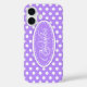 Modern girls bright purple polka dot patterned graphic case. Perfect for personalizing your device or as a special Christmas or birthday gift for a woman or teen girl. Personalize with your name and initial. This example reads: Bijanka M. Design by Sarah Trett for www.mylittleeden.com