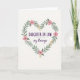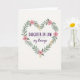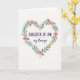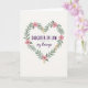 This card features a heart-shaped wreath made of layered green leaves and small blossoms, set on a soft off-white background that feels gentle and welcoming. The leafy heart frames a loving message that speaks to a daughter-in-law with a caring, family-close tone ❤️. The main words sit centered inside the heart, with “DAUGHTER-IN-LAW” in deep purple near the top and “MOTHER’S day blessings” arranged beneath it in smaller, coordinating lettering. The purple text stands out clearly against the pale backdrop, while the lower line has a lighter, more flowing look that softens the layout. Around the lettering, broad leaves curve inward as if they’re holding the words close, adding a quiet sense of affection. Pink five-petaled flowers with tiny star-like centers dot the wreath, suggesting a sweet, friendly warmth 🌼. Small clusters of yellow-orange blooms appear between the leaves, and the heart outline is formed by overlapping greenery that wraps neatly into a pointed base.