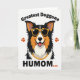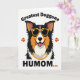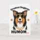 Designed with a bright, modern dog portrait, this card centers on a tri-color canine head against a white background, mixing black fur with orange-tan and white patches. The dog wears yellow-framed sunglasses with dark lenses, giving it a cool, friendly look that feels like a wink to someone you adore ❤️. A wide grin and a pink tongue add a light, affectionate energy, like the pup is greeting its favorite person at the door. A chunky gold chain sits around its neck, adding a fun, dressed-up touch without crowding the main image. Above the head, the phrase “Greatest Doggone” curves in a dark, easy-to-read style, while the lower text “HUMOM...” sits near the bottom in matching dark lettering. Three small orange paw prints follow the bottom word like an ellipsis, and two more orange paw prints sit on either side of the dog’s face 🌼. The fur edges are drawn with sharp, spiky points, and the orange paw prints stand out warmly against the white space.