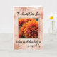 This design shows a close-up of a single, striking flower centered on the card, framed so its layered petals curl inward like a gentle spiral. The petals shift through warm oranges, deep reds, and sunny yellows, giving the bloom a romantic, glowing presence ❤️. Behind it, a soft haze of pale pink, daisy-like blossoms sits out of focus, like a quiet garden moment shared between close friends. The lighting is diffused and warm, catching the petal edges and making the color transitions look tender and smooth. A short line of dark lettering sits near the top margin, and a second line of matching dark lettering rests near the bottom, both kept clear of the flower’s center. The contrast between the sharp central bloom and the misty background adds depth, while the pink accents keep the scene gentle and inviting 🌼. The flower’s core forms a neat radial pattern, with tightly packed shapes fading outward into wider, curling petals.