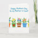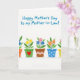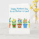 Designed with a bright white background, this card features a neat row of five small flowerpots stretching across the lower area, like a shared garden shelf that quietly suggests closeness ❤️. Each pot has its own look—some in solid color, others with zigzags, dots, or fine cross-lines—in warm oranges, leafy greens, earthy browns, soft blues, and sunny yellows. The flowers rise in friendly clusters, mixing yellow sun-like blooms with pink petals and cool blue blossoms, as if different personalities are happily gathered together. Near the top, a rounded, hand-drawn message in medium blue sits centered with plenty of open space around it, keeping the layout airy and easy to read. One green pot near the middle stands out with a red heart on its front, a small sign of affection that feels like it’s meant for someone special 🌼. Light gray shadows sit just under each pot, giving the lineup a gentle grounded look without making it heavy. The pots are evenly spaced, and the heart on the green pot is a simple red shape centered on the pot’s front.