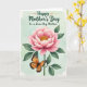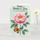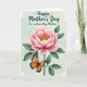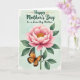 This card features a large, fully opened flower centered on the front, with many layered petals fading from pale blush to deeper pink, like a gentle blush shared between close friends ❤️. At the flower’s middle, a tight cluster of golden-yellow stamens glows, drawing the eye like warm attention held a moment longer. Beneath the bloom rests a winged insect, its broad wings shaded in warm orange and traced with dark veins, with tiny white dots along the edges that feel like careful, affectionate details. A small blue accent on one upper wing adds a quiet spark, like a secret shared in a soft voice. The background is a light mint-green wash with subtle watercolor texture, giving the scene a calm, airy setting 🌼. Near the top, a short message appears in deep emerald-green lettering, centered above the flower, with small arrow-like accents framing the words. The petals show soft shading and gentle highlights, and the insect sits just below the blossom with its wings spread wide against the mint backdrop.
