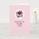 Designed with a soft pale pink background, this card sets a gentle, affectionate mood that feels like a quiet hug ❤️. Near the upper area, a bright white circular frame draws your eye like a little spotlight. Inside it, a floral cluster centers on a deep magenta rose with velvety-looking petals, surrounded by smaller blush-pink flowers and tiny buds that lean in close, like friends gathered together. Emerald-green leaves weave between the blooms, adding contrast and a calm, garden-fresh touch. Below the circle, a Mother’s Day message is placed in flowing lettering, centered and easy to notice. The text appears in a deep plum color, standing out clearly against the pink space, with a tone that suggests appreciation for a mother figure related through marriage 👩. The white circle sits above the plum message, and the rose remains the strongest color accent within the bouquet.