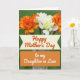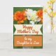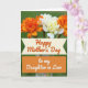 Designed with a lush nature scene, the card features a bouquet of ruffled orange flowers mixed with creamy white blooms that lean toward each other like close friends sharing a quiet moment ❤️. The orange petals are densely layered and textured, while the pale blossoms add a soft contrast with gently stacked petals. Slender green stems show through a clear glass vase, adding a simple, grounded touch. Behind the arrangement, a softly blurred green backdrop creates depth, keeping the focus on the flowers and their cozy, affectionate closeness 🌼. Across the lower portion, a cream banner with tapered ends holds an orange message in flowing lettering, centered and easy to spot. Directly beneath it, a solid orange rectangle contains a second line of text in white, set neatly in the middle for strong contrast. The top third is filled with the bouquet, while the banner and orange panel sit stacked below, aligned centrally against the calm green background.