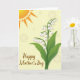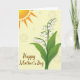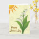 Designed with a gentle spring scene, this digital illustration centers on a cluster of bell-shaped white blossoms touched with a faint lavender blush, rising from the lower right on deep green stems and broad emerald leaves. The flowers lean toward one another as if sharing a quiet secret, adding a soft note of friendship and closeness ❤️. In the upper left, a stylized sun glows in warm orange and yellow tones against a pale yellow background, casting a cozy, affectionate warmth across the page. Subtle circular patterns float behind the scene, like softly drifting halos that make the setting feel calm and intimate. Tiny white dots are scattered around like dew or glimmers of light, echoing the tender mood. Near the bottom, a short line of text sits below the main flowers in flowing brown lettering, balanced neatly under the leaves 🌼. The sun shows segmented rays and a lightly patterned edge, while the leaves and petals have gentle shading for depth.