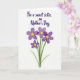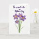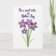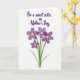The front design shows a tall, white background with a sweet cluster of four purple flowers centered in the lower half, their petals shaded from deep violet to soft lavender like a gentle paint wash. Each bloom has five rounded petals and a sunny yellow center that feels like a little glow, adding a tender, affectionate warmth ❤️. Thin green stems rise from the bottom edge and lean slightly toward one another, like close friends sharing space, with a few small leaf shapes tucked along the lines. Near the top, the message “Happy Mother’s Day sweet sister” sits in flowing deep-purple lettering, aligned above the flowers and leaving plenty of open white space around it. The purple text echoes the blossoms, while the yellow centers and green stems keep the layout bright and balanced 🌼. The overall look stays calm and airy, with soft edges and subtle layering in the petals that gives the flowers gentle depth. The four blossoms form a loose diamond shape, with the tallest flower reaching upward toward the purple message and the stems gathered neatly at the bottom. Share your Mother’s Day sentiments with love and care.