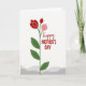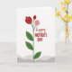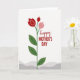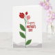 This card features a minimalist floral illustration that feels like a gentle hug for someone you care about ❤️. A slender green stem rises from a base of soft, wavy gray bands, giving the scene a calm, grounded start. Near the top, three stylized blossoms open like friendly faces turned toward each other—two in deep red and one smaller in soft pink—suggesting closeness and affection. Inside each bloom, a curved line of tiny white dots adds a delicate sparkle, like quiet attention shared between loved ones. Dark green leaves appear at different points along the stem, balancing the composition with simple, natural shapes. To the right of the flower, the word “happy” appears in flowing red lettering above “MOTHER’S DAY” in red uppercase, aligned as a neat stacked message 🌼. The background is bright white, making the reds and greens stand out clearly, with the gray bands sitting low along the bottom edge.
