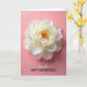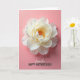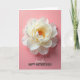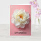 This greeting card features a large, fully open flower filling the upper two-thirds, its many layered petals fanning outward like a soft embrace ❤️. The petals shift from creamy white to pale yellow, with gentle light and shadow giving them a tender, almost see-through look. At the center, golden-orange filaments glow warmly, like a small spark of affection against the softer tones. The background is a solid blush pink that feels calm and intimate, letting the bloom take all the attention. A faint, elongated shadow sits beneath the flower, adding depth as if it’s hovering slightly above the surface. Near the bottom, the word “Stepmother” is placed in a flowing, decorative letter style in a darker tone, followed directly underneath by “HAPPY MOTHER’S DAY” in clear, uppercase letters. The layout leaves generous breathing room around the message, keeping the focus on the flower and the gentle connection it suggests 🌼. The creamy petals curve outward over the pink field while the warm orange center sits sharply in focus above the stacked text.