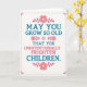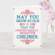 Designed with a cheeky, mischievous tone, this card centers on the message “MAY YOU GROW SO OLD THAT YOU UNINTENTIONALLY FRIGHTEN CHILDREN” in large, easy-to-read sans-serif lettering. The lines of text alternate between calm teal-blue and soft rosy pink, giving the words a friendly rhythm against an off-white background. Small floral accents—pink blossoms with simple leaf clusters—sit above and below the wording, like a gentle garden framing a teasing joke ❤️. A few sprigs also tuck between some lines, adding a light, companionable touch, as if the flowers are leaning in on the humor with you. The text stays neatly centered while the decorative elements keep the layout balanced and orderly. A dotted border in a deeper reddish-pink runs around the edges, with tiny botanical flourishes in the corners 🌼. In the corners, the little leaf curls mirror the pink blossoms and echo the teal-blue type.
