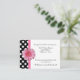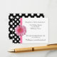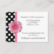 Pretty white wedding reception enclosure cards, with a black and white polka dot pattern, on the left front and covering the back of the card. Graphics of a pink ribbon runs down the left side of the front next to the polka dots, with a pink Gerber daisy decorating the middle, of the ribbon. Black text is ready to personalize for your wedding.