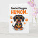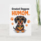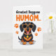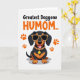 This greeting card features a stylized, short-legged dog with an elongated body, sitting proudly as if posing for someone it adores ❤️. Its glossy black coat is set off by warm tan markings, and the dog’s open-mouthed grin, with a pink tongue showing, adds a friendly, affectionate spark. Above the dog, large text sits near the top in orange and black, making the message the first thing you notice. The lettering is centered and stacked, with the orange words drawing the eye while the black words add contrast and clarity. Orange paw prints dot the space around the dog like little footsteps, giving the scene a sense of motion and a flirty, companionable energy 🌼. The dog leans into a stylish look with oversized dark sunglasses in a leopard-pattern frame, as if sharing a knowing glance with a close friend. A matching collar circles its neck, finished with a shiny gold medallion that catches attention against the plain white background.