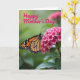 This card features a close-up garden scene where a winged insect with orange-and-black patterned wings rests gently on a tight cluster of fuchsia-pink, five-petaled flowers, like it’s pausing for a quiet moment of affection ❤️. Fine lines in the wings and small pale spots stand out against the warm orange tones, adding delicate detail without crowding the view. The blossoms form a soft cushion beneath it, their bright pink petals gathered closely together as if holding one another like friends. Behind them, leafy greens fade into a smooth blur, creating a calm, sunlit backdrop that keeps the focus on the small, tender meeting at center stage. Across the upper portion, the text “Happy Mother’s Day!” sits prominently in a bright pink, flowing style that echoes the flower color. The lettering is placed high enough to feel airy, leaving the insect and blooms unobstructed below 🌼. The overall color palette balances hot pink, fresh green, and warm orange in a way that feels gentle and close, like a fond glance shared in a garden. The background remains softly out of focus, with green foliage melting into light and shadow behind the flowers.