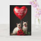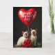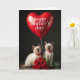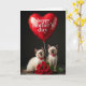 On the front of the card is a studio-style portrait of two young cats with soft cream fur and darker shading on their ears and paws, posed close together as if sharing a quiet, friendly moment ❤️. Their bright blue eyes meet the camera with a gentle, trusting look, and each wears a red bow tie dotted in white for a dressed-up touch. Above their heads floats a large, heart-shaped balloon in glossy scarlet, catching highlights from the lighting like a polished ornament. Across the balloon, a short Mother’s Day message appears in white lettering, centered and easy to read. A thin string drops from the balloon toward the cats, creating a visual line that ties the scene together. Along the bottom edge rests a full cluster of deep red roses with layered petals and fresh green leaves, adding a romantic flourish 🌼. The background is a smooth dark gray, and the roses’ rich reds echo the balloon’s shine in the lower foreground.