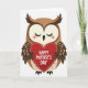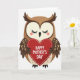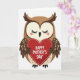This card shows a simple, stylized bird centered on a white background, facing forward as if offering a quiet, affectionate moment ❤️. Its feathers are shaded in warm browns, with creamy tones on the face and belly, and small dotted accents scattered across the wings and lower body for gentle texture. The bird’s eyes are closed with fine dark lashes, and soft pink blush circles on its cheeks give it a shy, caring look, like a tender pause between close friends. In its small dark wings, it holds a large red heart close to its chest, making the scene feel intimate and devoted. A dashed white line runs around the edge of the heart like neat stitching, adding a cozy, keepsake-like detail. Across the center of the heart, clear white text reads “Happy Mother’s Day,” standing out strongly against the red 🌼. The heart sits squarely in the middle of the design, with the bird’s rounded shape framing it against the open white space.
