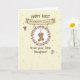 This card features a soft cream background with a light scatter of muted polka dots, setting a gentle scene for a first Mother’s Day message ❤️. Across the top, a sepia-toned banner stretches from side to side with “Happy 1st Mother’s Day!” written in a friendly, hand-drawn look in dark brown. In the center, a circular wreath of pastel leaves and small blossoms in soft greens, dusty blues, pale pinks, and warm browns frames the main character. Inside the wreath sits a cute brown plush-like bear figure wearing a tiny flower crown, holding a small object close as if offering it with shy affection. On either side, two small baby-like figures float in midair with matching floral headpieces, angled inward toward the bear as though sharing a sweet family moment 🌼. Their skin tones differ slightly, and their relaxed faces and open poses add a tender, close-knit feel to the scene. Near the bottom, the line “From your little Daughter!” appears centered in dark brown text beneath the wreath. The wreath’s flowers are arranged evenly around the circle, with tiny leaf clusters pointing outward against the dotted background.
