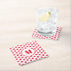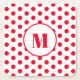 Polka Dot Monogram Initial Red Dots on White Square Paper Coaster