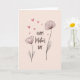 This card features a gentle digital illustration on a muted blush background, setting a soft, affectionate mood for Mother’s Day ❤️. Centered text reads “HAPPY” at the top and “DAY” at the bottom in upright sans-serif letters, with “Mother’s” placed between them in a flowing cursive style. The main words are shown in a deep earthy brown, while the cursive “Mother’s” appears in a rosy tone that feels tender and close. Slim floral drawings frame the message on both sides, like a quiet embrace that suggests care and closeness. On the left, a single curved stem holds a simple bloom outlined in brown with a light rose fill, and on the right, a taller botanical shape rises with a fuller flower and a few minimal leaves. Small heart doodles drift from the upper left toward the center in bright rose, adding a sweet, friendly touch 🌼. The overall palette stays to pale pink, rich brown, and rosy accents, with the hearts scattered near the top left and around the flowers.