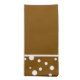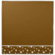 Dinner size napkin shown in a brown and white polka dots border print on bottom edge.