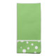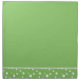 Dinner size napkin shown in a green and white polka dots border print on bottom edge.