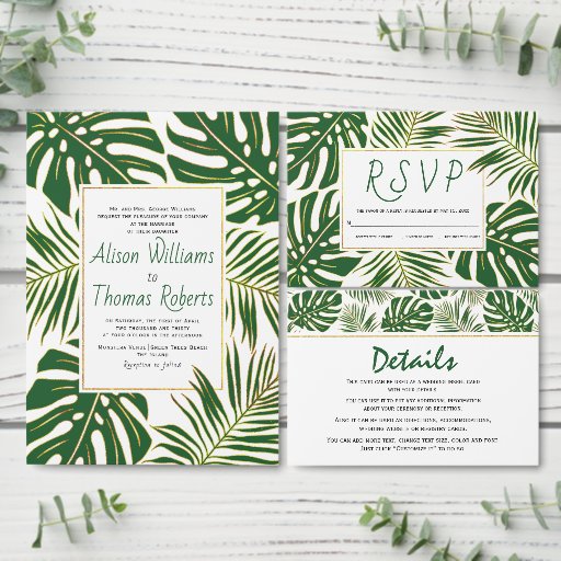 Tropical monstera and palm leaves weddingDesigned by Modern Designs