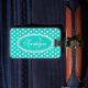 Modern girls bright aqua polka dot patterned graphic luggage tag. Perfect for holidays and trips. Add your name and initial to front of tag and customize the reverse of this tag with your name and address details. Designed exclusively by Sarah Trett.