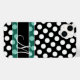 A black and white polka dot pattern with a place for your monogram. It includes a teal green stripe for a modern, clean design for any woman.
