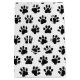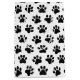 Black and white polka dot pawprint on white background.