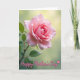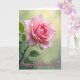 Designed with a close-up view of a fully opened pink flower, this card focuses on soft petals that curl in a gentle spiral, like a quiet embrace ❤️. The bloom sits high in the frame, showing layers of rose and blush tones that deepen near the center and fade toward the ruffled edges. A green stem arcs in from the lower left with a few smooth leaves, adding a grounded, caring touch like someone reaching in to hold the moment. Behind it, the background melts into a hazy mix of muted greens and pale yellow light, suggesting early morning in a garden. The soft focus keeps the attention on the flower’s delicate texture, creating an intimate scene that feels like a shared glance between close friends. Along the bottom, a short message appears in flowing lettering in a darker pink, centered and easy to spot, with a small 🌼 nearby. Tiny natural nicks on a couple of petal tips are visible near the outer edge of the bloom.