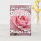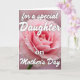 This card features a large pink flower filling the center and lower area, its many layered petals softly ruffled like a tender embrace ❤️. The color shifts from a deeper rosy pink at the tight center to paler, airy edges, giving the bloom a gentle glow. The background fades into a blurred wash of matching pink tones, like a quiet backdrop that keeps the focus on the flower and adds a romantic hush. White lettering sits on top, with the first line arcing across the upper half in a flowing cursive style, as if spoken softly to someone close. A second line rests near the bottom in a more traditional serif style, also in white, creating a calm balance against the pink. A small hint of green stem peeks in from the lower left, adding a natural touch that feels grounded and sweet 🌼. The outer petals curl outward with pale highlights, while the center stays tightly packed and richly colored.