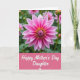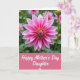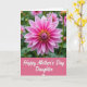 Designed with a large pink flower centered high on the card, the bloom fills most of the upper area with layered petals spreading outward like an affectionate embrace ❤️. The petals fade from pale pink edges into deeper fuchsia, then warm touches of golden yellow, drawing your eye into a dark magenta center packed with tiny, textured florets. Behind it, soft green leaves blur into the background, giving the scene a gentle, intimate garden feel, like a quiet moment shared between close friends. In the upper right, a tightly curled bud sits nearby, adding a sweet “just about to bloom” detail 🌼. Along the bottom, a wide fuchsia band anchors the design and echoes the flower’s richest tones. Centered on that band is a flowing white message, with a small white floral icon placed beside the lettering. The greenery stays softly out of focus while the main bloom remains crisp, and the bud is clearly visible near the top-right edge.