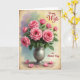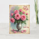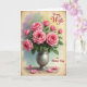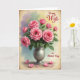 Designed with a tender still-life look, the card centers on a full bouquet of pink roses gathered in a rounded, pewter-toned vase, with petals opening like a quiet exchange between close friends ❤️. The blooms range from fuchsia to soft salmon, and the deeper centers add a gentle sense of closeness, as if the flowers are leaning toward one another. Behind them, a pastel wash of muted blues, greens, and purples creates a dreamy, watercolor-like setting that keeps the focus on the roses. A few loose rose petals rest on the surface below, echoing the bouquet’s color and suggesting a soft, lingering moment. An antique-style border surrounds the scene, resembling aged parchment with lightly worn edges for a timeless finish. Deep red lettering appears in the upper right and again in the lower right, standing out against the pale background without overpowering the artwork 🌼. The vase sits slightly below center, with scattered petals near its base and the parchment-like frame enclosing everything.