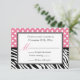Stylish wedding reply cards with a white polka dot pattern over pink on the top and black & white zebra stripes on the bottom.