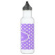 Modern girls bright purple polka dot patterned drinks / water bottle. Perfect for personalizing your drink or a great for a friend as a Christmas or birthday for a woman or teen girl. Personalise with your own choice of name and initial. This example reads: Nikita R. Design by Sarah Trett.
