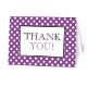 Stylish, all occasion polka dot purple thank you cards with white polka dots over purple and thank you in the center on the front. The inside can be personalized with your own custom message or can be easily deleted to leave the card blank for handwriting your message.