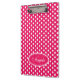 Modern bright red pink polka dot pattern clipboard. Customize this clipboard with your name and your family initial on both the front and back of the clipboard. Currently reads Angela K. Ideal personalized gift for girls and women studying at school, college or university whom want a distinctive named clipboard to use to make notes. Designed by Sarah Trett.