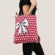 Polka dots and a big bow decorates this fun tote bag. Use this stylish tote bag for work, school, shopping, the beach, travel, etc...The design is from original art.