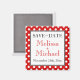 Stylish custom Save the Date magnet for announcing your wedding, designed with white polka dots over red. No minimum order!
