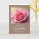 This card features a close-up pink rose, its velvety petals curling in a gentle spiral toward a snug center, like a quiet embrace ❤️. Soft, diffused light glides over the flower’s folds, giving it a calm, intimate glow that suggests closeness and affection. Tiny water droplets cling to the petals and catch the light like small jewels, adding a fresh, just-after-morning feel. Behind the bloom, a warm golden-beige background fades into a smooth blur, keeping the focus on the rose’s tender details. A crisp white border frames the floral photo, creating a neat edge between the image and the lower section. Beneath it sits a wide muted taupe-brown panel with a message set in two styles: clear sans-serif lines paired with a flowing cursive-style line, both in light-colored lettering for easy reading 🌼. The main text is centered on the brown panel, with the larger cursive-style words standing out slightly more than the simpler lines above or below. The overall layout is stacked with the rose image on top and the taupe-brown text panel below, all enclosed by the white frame.