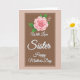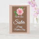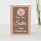 This card shows a tall, portrait-style design with a fully opened soft pink rose at the top, its layered petals shaded to look gently kissed by light, with a tender, romantic mood ❤️. Around the rose are fresh green leaves and a few small blush blossoms that feel like quiet companions gathered close. The flowers sit on the upper area of a warm chocolate-brown rectangular panel, like a cozy backdrop for a close relationship. A thin darker line frames the panel on the inside, and a wider fawn-beige outer frame adds a matted, keepsake-like look. Below the floral cluster, a short message appears centered in flowing white letters that stand out clearly against the deep brown. The lettering looks slightly luminous, as if softly glowing, and it sits with generous spacing so the design can breathe 🌼. The overall palette blends comforting browns with romantic pinks and crisp white accents. The rose’s petals show fine texture and gentle highlights, while the beige border stays smooth and even around all four edges.
