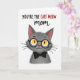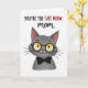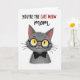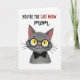 This Mother's Day card features a gray cat centered on a white background, drawn with a soft, fuzzy look that makes it feel like a friendly companion. The cat faces forward with a gentle smile, a small pink nose, and round glasses dotted with tiny white spots, giving it an attentive, affectionate gaze. Its yellow eyes with narrow pupils add a bright spark, like it’s sharing a quiet, knowing moment with mom ❤️. Under the chin sits a black bow tie with darker pattern details, adding a dressed-up touch that feels sweet and caring rather than formal. Above the cat, the text is stacked in three parts: “YOU’RE THE” appears first in black, followed by “CATS MEOW” in red to draw the eye, and then “mom” in black with a flowing, handwritten look. The simple spacing keeps the message easy to read while leaving plenty of open white space around the character for a light, airy feel 🌼. The glasses sit high on the cat’s face, and the red words stand out sharply against the white background.