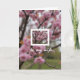 This card shows a soft spring scene where thin tree branches fade into a hazy background of pale pink blossoms and muted green tones, like a gentle daydream. In the middle sits a crisp rectangular window filled with fuller flower clusters, their petal-rich shapes standing out against darker branch lines. The contrast between the misty outer area and the sharp inner frame feels like two close companions leaning in, sharing a quiet moment ❤️. Light is diffused and calm, giving the blooms a tender glow rather than harsh shadows. Near the bottom, the words “to my wife.” appear in flowing white lettering, centered beneath the framed floral inset. The white text rests against the softer pink-and-green backdrop, making it easy to read without overpowering the flowers 🌼. The inset’s blossoms look plush and layered, with bright pink highlights that draw the eye inward. The outer background stays softly blurred, with slender branches crossing diagonally behind the central rectangle.