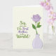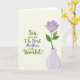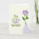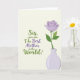 This card features a muted cream background with a flowing message placed across the upper area and slightly left of center, drawing your eye in like a gentle conversation. The lettering alternates between leafy green and soft lavender, with a few words set larger to feel like an affectionate emphasis, and a small heart-like warmth comes through in the way the lines curve ❤️. The text is arranged in stacked lines, leaving open space around it so the words feel airy rather than crowded. Down in the lower right, a single stylized flower opens in pastel purple, its layered petals suggesting a tender, caring presence. Two bright green leaves extend from a slim stem, echoing the green used in parts of the message and adding a friendly, fresh touch 🌼. The bloom sits in a simple vase shaded in pale lavender, gently matching the flower and some of the text. A faint shadow under the vase gives a slight lift from the background, and the petals are drawn as neat concentric curves with a rounded center.