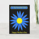 This card features a single daisy-like flower centered on a deep black background, as if lit by a small spotlight. Twelve long, evenly shaped petals fan out in bright cerulean blue around a round, sunny yellow center, giving the bloom a friendly, affectionate presence ❤️. Above the flower, the words “To My Beautiful Mimi” appear in yellow lettering inside a rounded blue banner with a thin yellow outline, like a gentle embrace around the message. Below the flower, “Happy Mother’s Day” sits in matching yellow text, balanced and easy to read. The smooth, stylized shapes and crisp edges keep the focus on the warm dedication, like a quiet moment shared between close family. A slight embossed effect makes the banner, letters, and flower look subtly raised, adding depth without clutter 🌼. The composition stays simple and centered, with the blue petals and yellow center standing out sharply against the black field. The final detail is the bright yellow text mirrored above and below the flower, framing it symmetrically on the dark background.