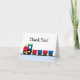 An adorable red and blue train with polka dots are featured on this cute thank you card.