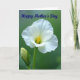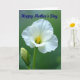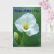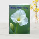 Designed with a close-up view of a white flower, the card focuses on soft petals opening around a sunny yellow center, like a gentle hug captured in nature ❤️. The main bloom sits slightly off-center, and its outer edges look almost see-through where the light catches them. A small bud stands nearby, leaning in as if keeping the flower company, hinting at quiet friendship and care. Everything is lit with diffused light that brings out fine textures and faint shadows without harsh contrast. The background is a deep, blurred green that makes the white and yellow stand out while keeping the scene calm and intimate. Across the top, the words “Happy Mother’s Day” appear in flowing lettering, colored a rich indigo blue and spaced so they don’t crowd the flower 🌼. The petals curve gently inward toward the golden center, with the bud rising just to the side against the soft green blur.