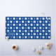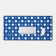 A bright colorful desk mat with a white polka dot design on a blue background. Personalize with a monogram initial to make this a great modern and trendy gift or as decor to brighten up your work station. Great for teens and adults alike.