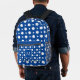 A funny colorful Backpack with a white polka dot design on a blue background. Personalize with a monogram initial to make this a great modern and trendy gift or back to school backpack. Great for teens and adults alike.