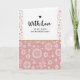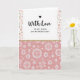 This greeting card features a tall, vertical layout with a calm white space at the top that feels like an open pause before a loving note ❤️. Near the upper left, a small black heart sits just before the words “With Love,” written in flowing black lettering across the white area. Beneath that, the line “TO MY NIECE ON MOTHER’S DAY” appears centered in a simple black type, giving the message a direct, affectionate focus without crowding the page. Slim vertical borders run down both sides, sprinkled with small flowers in blush and peach with soft green leaves, like a gentle spring frame 🌼. A narrow gold-toned strip with a tiny repeating texture separates the airy top from the more patterned bottom, like a quiet ribbon between two moments. The lower section shifts into a fabric-like design with a pale pink background and a faint crosshatch texture, adding a cozy, close-to-the-heart feel. Across that pink field, dotted white circles and starburst shapes repeat in neat rows, resembling delicate stitched ornaments. The dots form small rings and star-like medallions that stand out crisply against the soft pink ground.