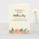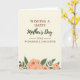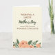 This card features a creamy background with centered text that reads “WISHING A HAPPY” near the top and “TO A WONDERFUL DAUGHTER” below it, both in deep reddish-brown lettering that feels steady and affectionate. Between those lines, “Mother’s Day” appears in forest green in a flowing, calligraphy-style type, adding a softer, romantic touch ❤️. Thin green horizontal lines sit near key phrases, gently guiding the eye from top to bottom like a quiet embrace. Along the lower portion, a botanical illustration spreads out as if it’s been placed there with care, suggesting closeness and appreciation without needing extra words. Peach-toned roses with delicate outlines mingle with deep green leaves and slender stems, creating a calm garden-like setting 🌼. The muted palette keeps everything tender and warm, while still letting the message stand out clearly in the center. A single small red berry peeks from the greenery near the bottom as a bright little accent.